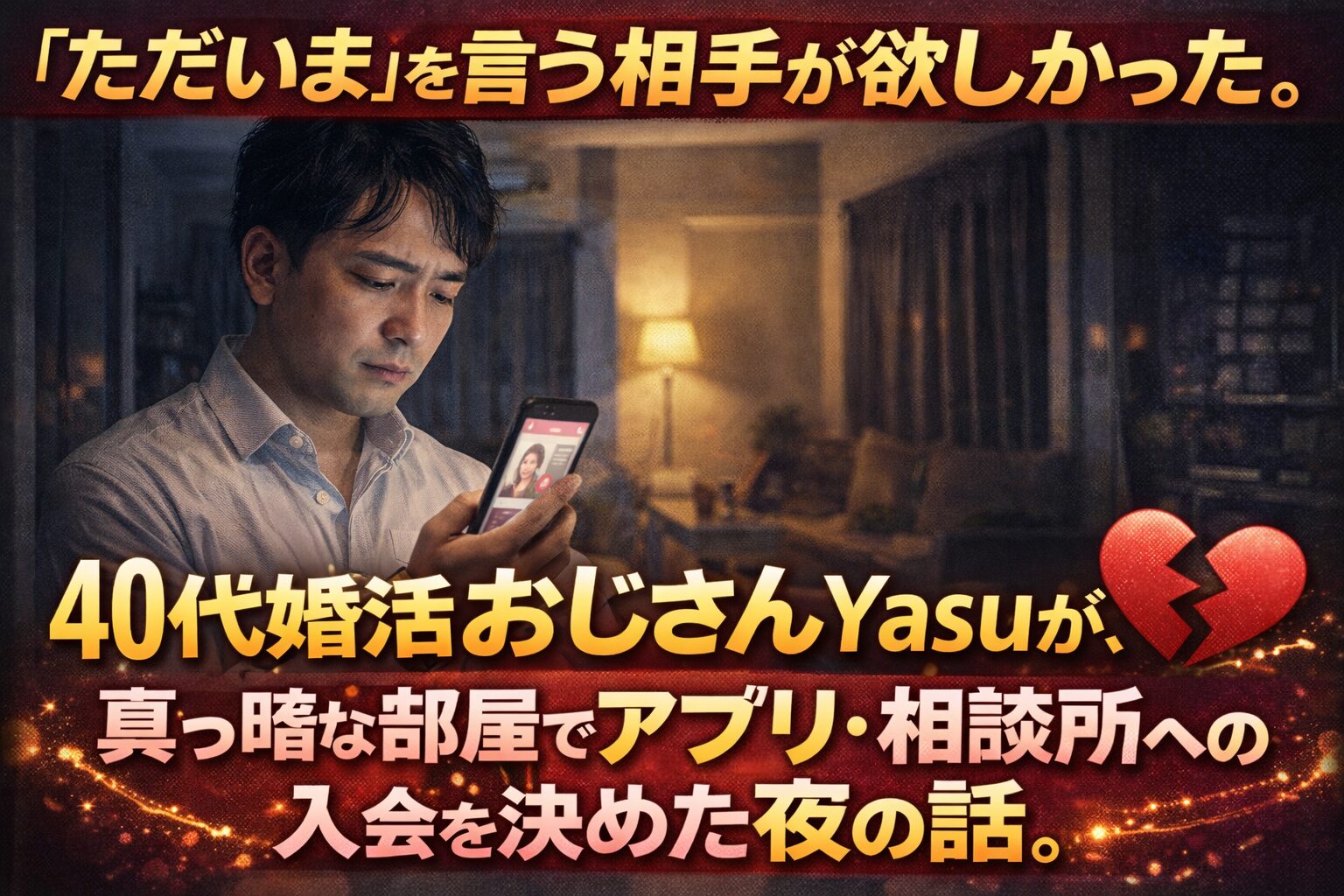 「ただいま」を言う相手が欲しかった。40代婚活おじさんYasuが、真っ暗な部屋でアプリ・相談所への入会を決めた夜の話。