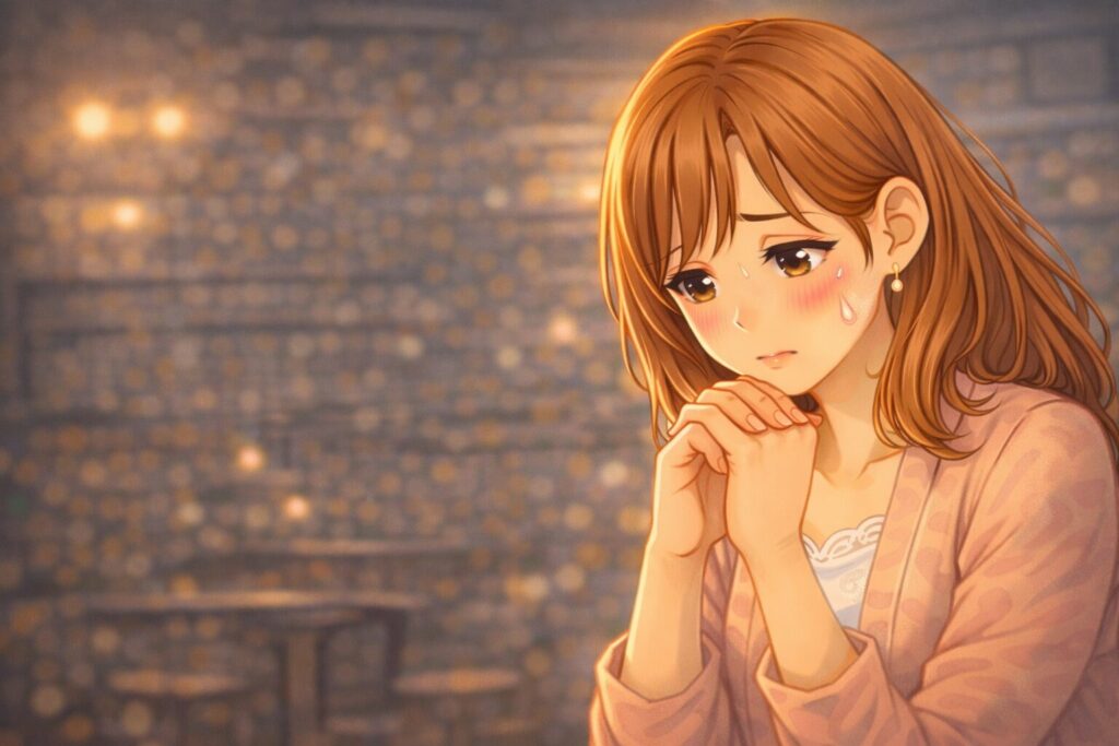このイラストは、その事実に先が思いやられている女性(ひかりさん)の様子を表しています。