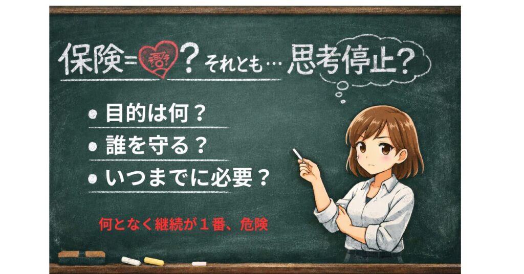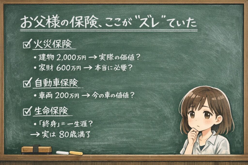 保険料を安くすることに気を取られて、肝心の『保障内容が今の生活に合っているか』を誰も確認していなかったのね。ちゃんと見直してみたらそこまでの保険料を支払わなくてもよかったかもよ。