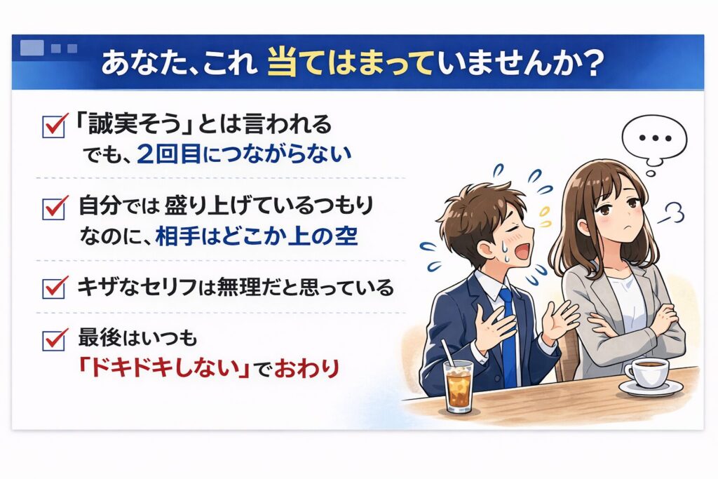 沈黙を無理に埋めないだけで、相手もリラックスしてくれるんですよね。無理に面白いことを言おうとしなくていいんです。