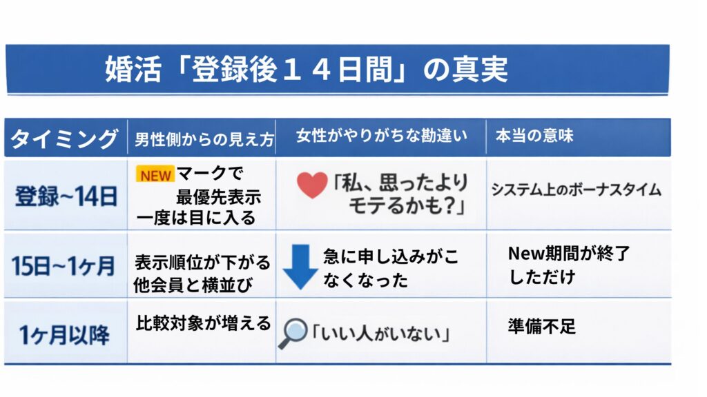 実は、婚活の世界には「登録後14日間のゴールデンタイム」というものが存在します。